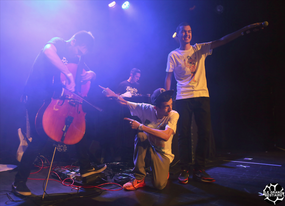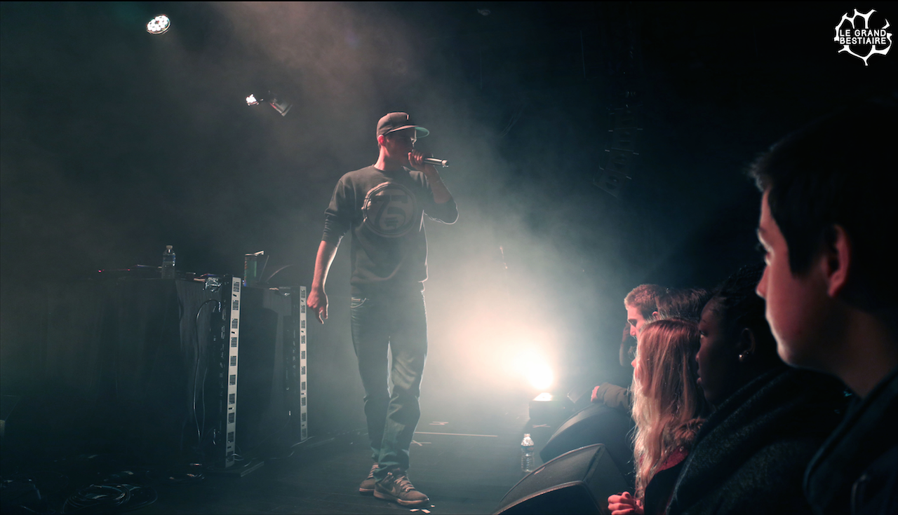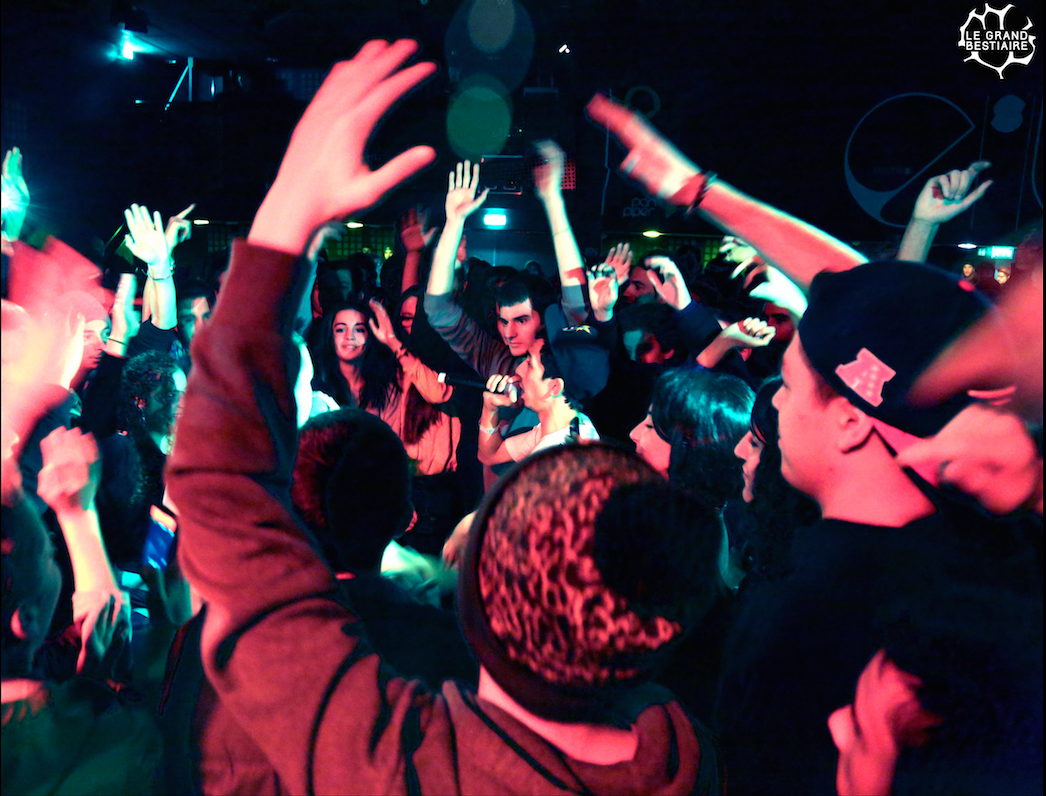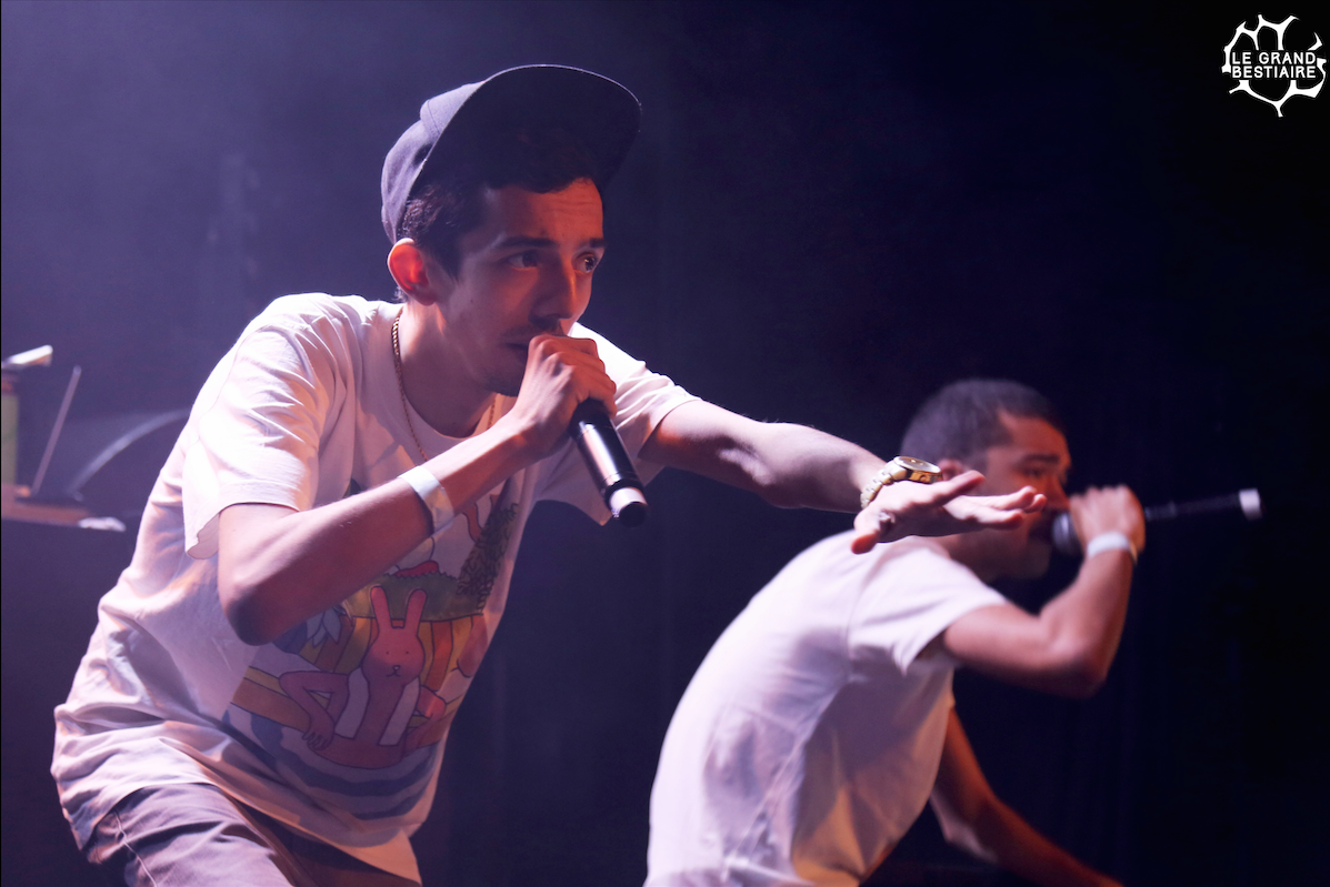 Au bout du troisième titre les invités commencent à prendre le contrôle de la scène. Hippocampe Fou, affublé d’un sweat plaqué or et d’une mitraillette gonflable, débite ses mesures d’énervé sur “J’ai toujours rêvé d’être un gangster”. Plus loin, le calme revient avec un remix touchant d’ “Open Wide” de Guts mis en voix par Cheeko. Dirty Zoo, Willy Wander, Joey Larsé et j’en passe sont également là pour mettre le feu à la scène pendant plus d’une heure, les parisiens ont tenus leur public en haleine.