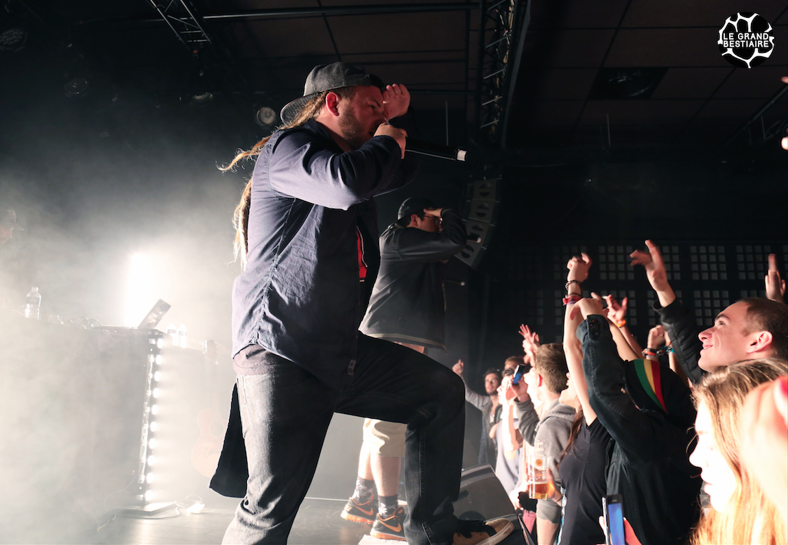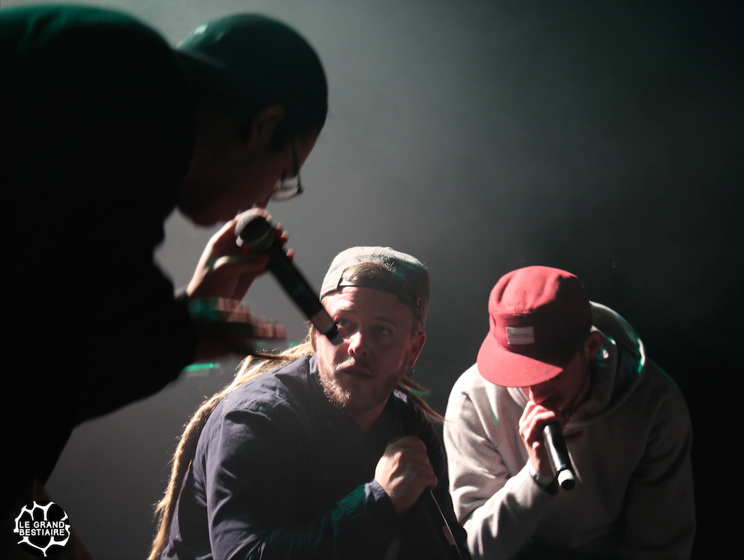 Un violoncelle électronique est apporté sur scène, entrent le musicien Luc Blanchot et le Dj. Ils entrent en scène sur un flow léger style boite à musique, “Pourquoi pas nous ?”. Les dreadeux hochent la tête hésitants un premier temps, ils enchainent “j’suis perdu, perdu dans mes songes”. Les deux frères ont happé l’attention d’un bon nombres de personnes qu’on pourrait croire venus pour le groupe suivant, style rap de zion.