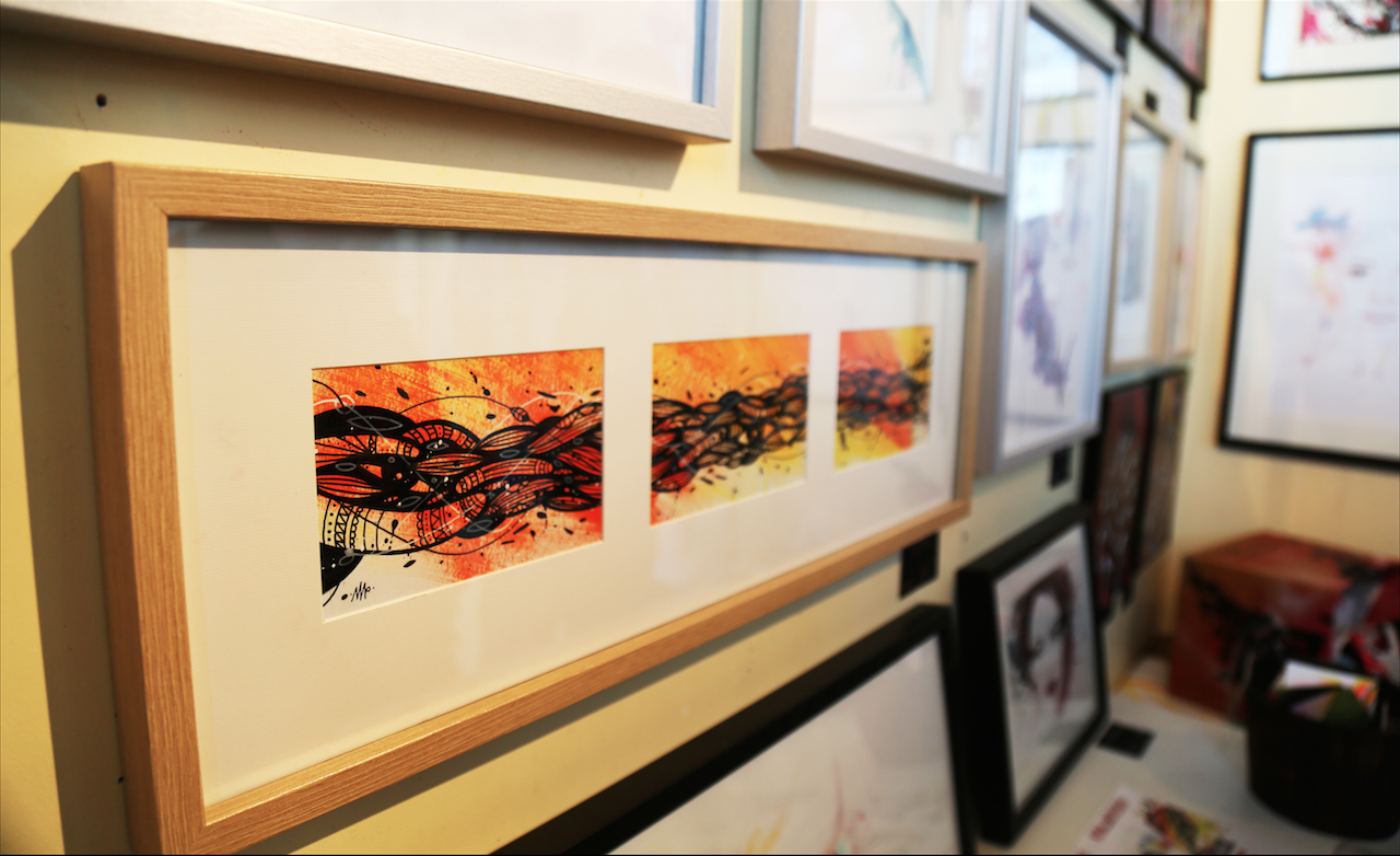 Une exposition avec des œuvres respectives mais également communes aux deux artistes, qui ont failli ne jamais voir le jour : « J’ai beaucoup tanné Kym pour qu’on travaille ensemble. Elle ne voulait pas trop au départ. Ça a commencé par des aquarelles foirées. Elle disait « j’aime pas ce que je viens de faire, c’est foiré ». Je n’étais pas d’accord je les ai récupéré, et c’est de là qu’est née la série Fusion. Je me suis réapproprié ces aquarelles, je graffe sur ses dessins déchirés, je fais du collage…. Quelquefois, il faut détruire pour mieux créer. »