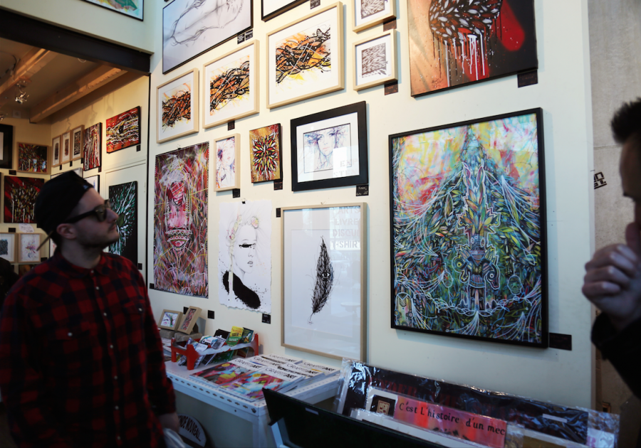 Aujourd’hui c’est au tour du graffeur Moyoshi et de la dessinatrice Kym Nguyen de poser leurs toiles dans ce concept-store aux allures de galerie d’art. Entre deux « chutes » aux inspirations bigarrées, offertes gracieusement par les artistes, Le Grand Bestiaire s’est entretenu avec Moyoshi & Kym.