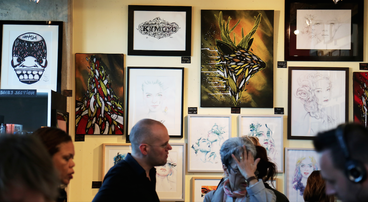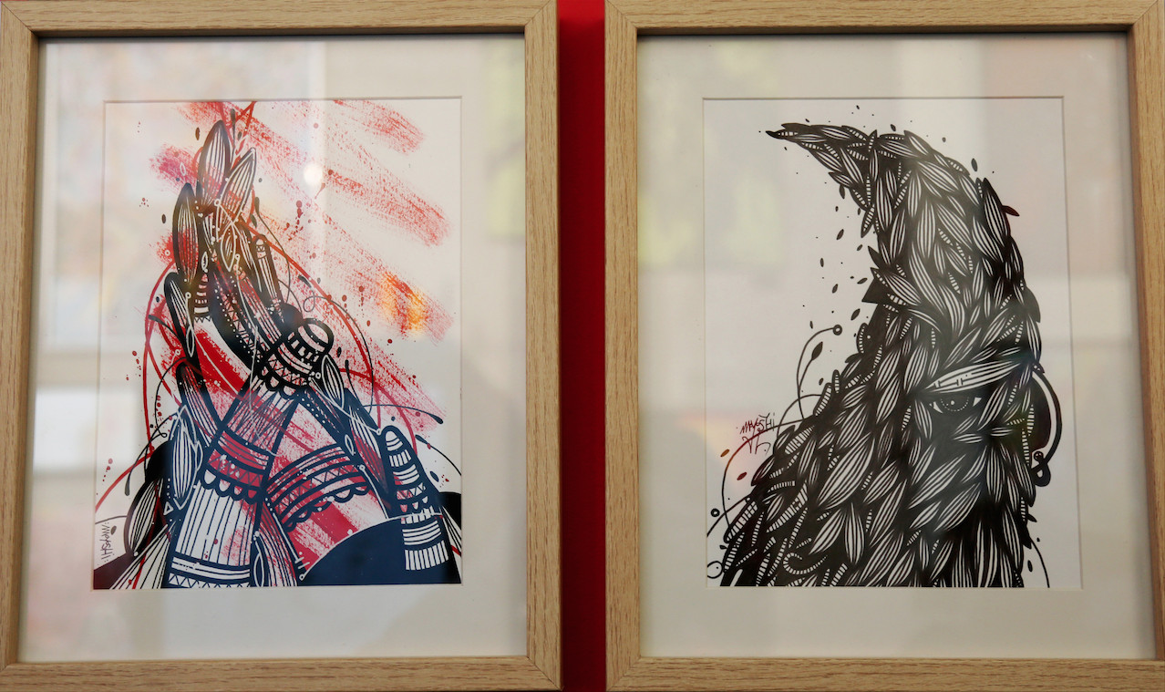 Le sourire aux lèvres, Kym est très émue de voir ses œuvres exposées au Lavo // Matik : « J’ai participé à des expositions collectives, mais c’est la première fois que mon travail est tant mis en avant. C’est important pour moi. Il y a 25 œuvres qui sont de ma propre composition, après le reste de l’exposition sont des Fusions et des œuvres de Moyoshi. J’ai toujours tendance à ne pas partager mes œuvres, mes dessins c’est comme mon journal intime. Si dans la journée j’ai vécu quelque chose de triste, je vais le véhiculer dans mon travail. Je ne suis pas forcément à la recherche de notoriété, même si je rêve que Moyoshi et moi devenions les nouveaux Supakitch & Koralie ! »
